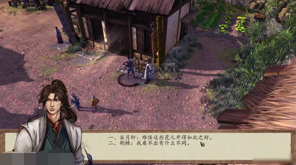 接下来是杜康村的【爱的山茶花】支线任务,该任务的剧情小编就不先描述了,直接告诉小伙伴们具体的通关教程。第一次与张帆谈话时要选择【谷月轩:难快这些花儿开的如此之好】,第二次选择【帮张帆送花】,接下来前往酒馆,将花朵送给杜鹃即可获取杜康酒,然后再去找张帆可获得兰花哦。