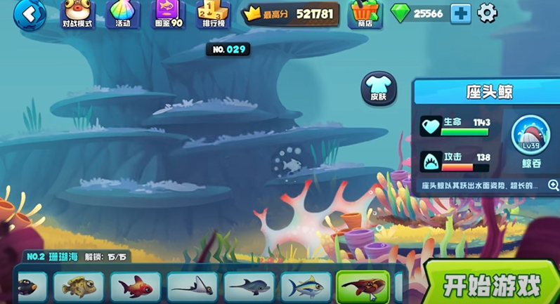 所有大家可以先在水底下进行一个发育,吃一些珊瑚和海藻,等到等级达到25级的时候,就可以根据等级的压制来选择要吃的目标,每过一段时间海洋中会有生物迁徙过来的,所以大家在迁徙来之前,要保证自身的等级不低于30!