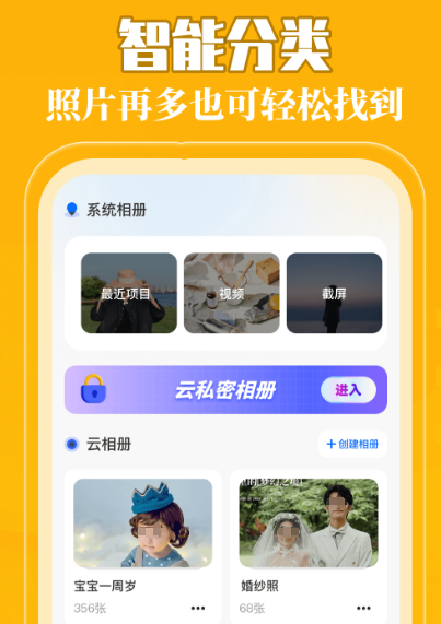 该app使用时简单便捷,可创建自己的本地相册,避免照片丢失。可当做备份软件储存照片,其中有500mm云空间可免费长期应用。