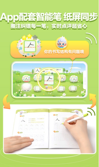 该软件是专门为儿童设计的自主学习型汉字练习软件,搭配智能写字笔和定制写字本,通过一笔一笔画的方式来练习,实现纸屏同步,采用了人工智能技术,让孩子在玩耍的过程中爱上练习汉字。
