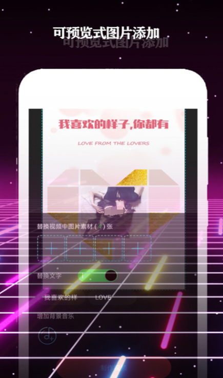 这是一款简单好用的视频剪辑软件,你可以添加各种可预览式的图片,然后通过各种免费的元素特效一键生成对应的酷炫视频。之后便可一键分享到不同的短视频平台,让你的创意能让更多的人看到,而不是只能孤芳自赏,然后也可导出发表到其他的平台或者继续更改内容。