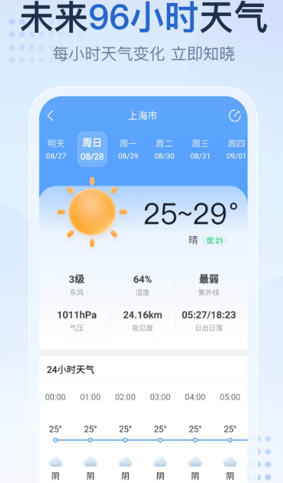 超长40天预报,可预测未来96小时变化,无论是乡镇还是城市都能在线查询,各种信息尽在掌握,比如气压、风力温度等。