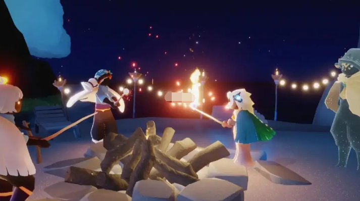 第五段:最后我们回到了露营日的营地。在篝火旁有一位先祖在弹奏着古老的乐器。露营日营地的先祖在篝火旁。玩家通过聆听音乐即可找到弹奏乐器的先祖。