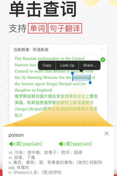 听力是关键部分,这样能够学习到标准的发音,学习到超多的语法,这款软件专为提升听力水平所打造。英语听力免费学每日都会更新双语新闻以及纪录片,是的不二,选择每篇短文都配备重点单词讲解,不断扩充每位语言爱好者的词汇量,另外还有各种趣味性习题,可以消化所学的知识,提升效果。