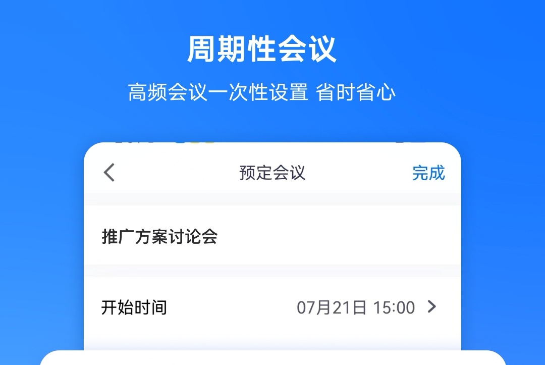 清爽的界面、强大的功能,使用这一软件,用户即可与同事进行实时的屏幕共享,高清流畅,此外,用户只需要一键操作就能实现会议的预约、发起,可以很好地提高办公效率。