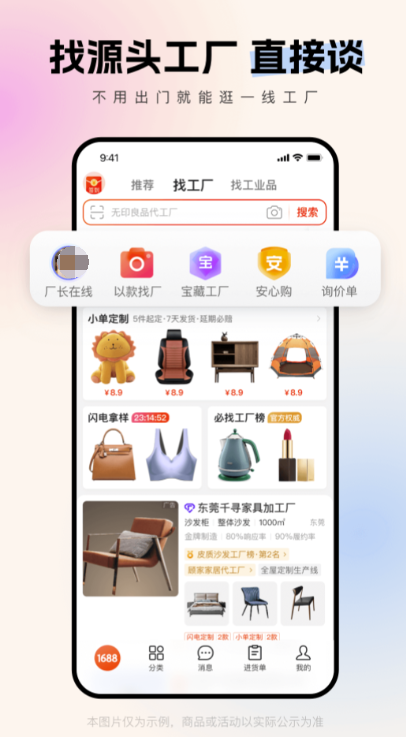 当代手机找货的神器大平台,这里拥有的商品种类十分的丰富,一手货源保准最低的价格,支持一件代发的服务,大数据的挖掘总能帮你推荐你最需要的商品。