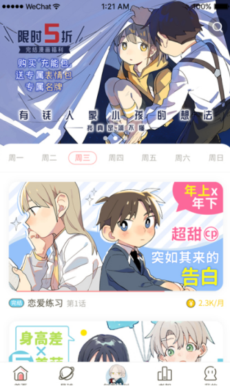 在这款软件上可以看到不同风格的漫画家创作的作品,打开首页有签到功能,各种不同风格的漫画分类非常详细,用户可根据自己的喜好来相应的类型中搜查找,系统也会实时更新当下最新的漫画内容,每天打开该软件上阅读20分钟的漫画,就可让你在创作作品上更有灵感。
