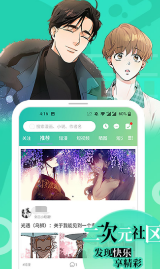 这是一款让你看了就非常上瘾的漫画软件,拥有国漫、日漫、韩漫,同时还有一些搞笑的漫画,每日实时更新连载,到该软件上总能找到一款自己喜欢的漫画作品,还有二次元社区,可结识到和自己有同样兴趣爱好的漫友。无论是一些经典漫画作品,还是当下比较受欢迎的漫画都可免费观看。