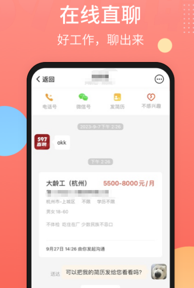 在这款直聘网当中可以与企业招聘者直接沟通,减少繁琐的中间流程。职位全面,每天都有60万 职位,不断推送,严格审核机制,告别虚假信息。