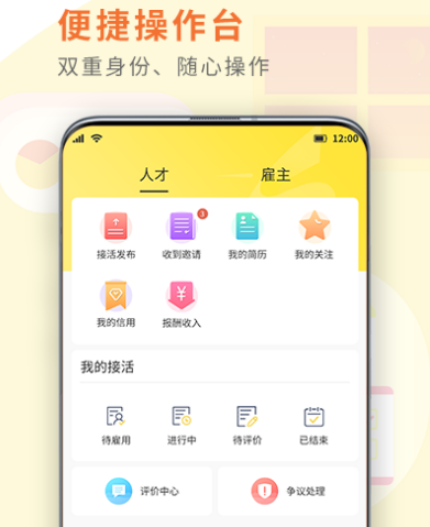 专业服务于短期自由职业市场,让工作者和雇主快速高效对接。平台注重信息真实性,达成契约之后,拥有较多权益保障。