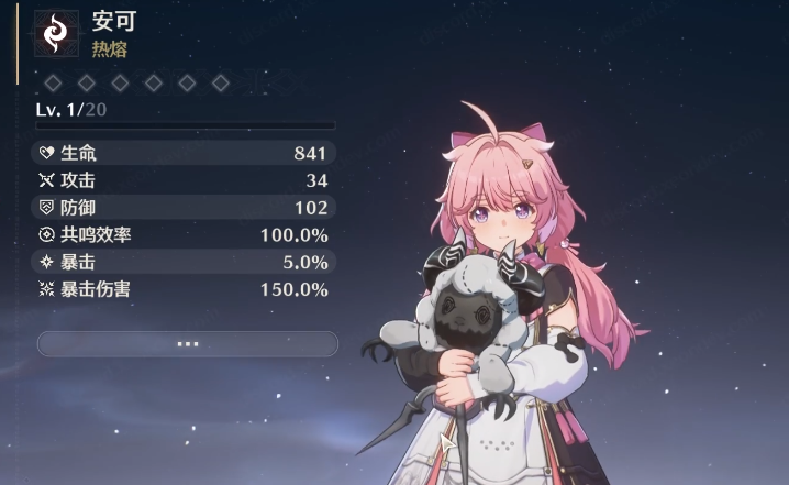 安可是在游戏中比较亮眼的一个人物,因为不管整体的服装设定还是角色的外观,都是比较亮眼的粉色设计,虽然这个角色要到中后期才能出现,但是依旧会有很多玩家在后期获取之后更换成这个角色,角色战斗过程中可以抛掷出玩偶一同作战,而且人物的战斗力是比较强的,是一个很有实力的角色,生命值和暴击伤害都非常高。