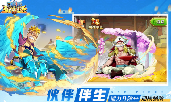这款游戏以大家熟知的《海贼王》为背景,用心地还原了动漫里的每一个小细节和元素,让人感觉就像真的进入了海贼世界一样。游戏主要是回合制战斗,但并不仅限于此。玩家还可以收集和养成各种伙伴,他们各自有独特的技能和属性,可以根据自己的喜好和战略来组建队伍。