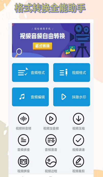 该软件是全能视频音频格式工厂,也是视频格式工厂mp3音频提取器,具有视频格式转换功能以及视频转音频、视频配音以及视频转gif等多种功能。也就是说自己不还是想要gif类型的内容,还是喜欢mp4的内容,都可支持相互转换,还可对视频配音,创作出更加有个性的视频。