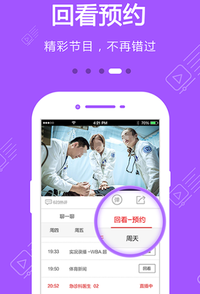 应用可追看热门电视剧,在观看时为避免错过各种精彩剧情,可以直接选择三天之内的节目回放,精彩剧集一集不落。