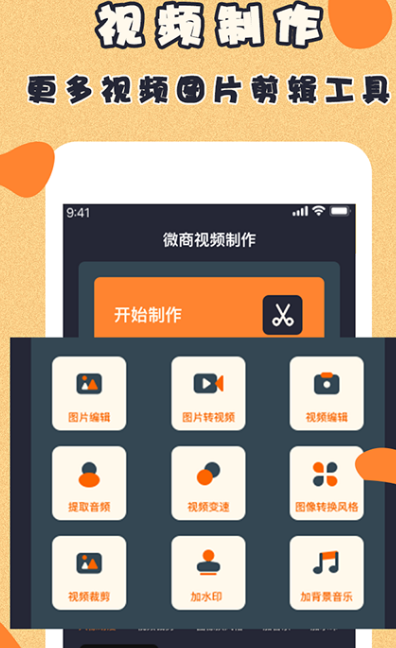 视频制作除了有视频补充功能以外,它还可完成对图片的制作,具有专业的工具,支持图片编辑,添加背景音乐、提取音频等,轻松制作好看视频。