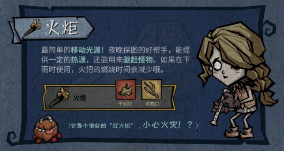 在饥荒之中最担心的就是如何度过黑夜,晚上就特别容易被查理抓走的时刻,需要利用一些照明工具才能提高生存能力。最主要使用的道具就是火炬、营火、提灯和矿工帽,火炬能够带来一些热源起到驱赶怪物的作用,但是尽量不要在下雨天使用。营火时刻提供固定光源,还能用来煮食物,但是不要太靠近会产生燃烧。提灯提供的是冷光源,不仅不会燃烧还具有较高的持久性。矿工帽提供的是移动光源,能够在探险时照亮使用。