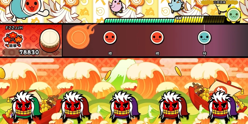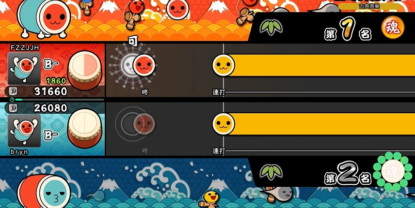 上面的玩法以及操作还是比较简单的,玩家的任务是跟随屏幕上的节奏指示,在正确的时刻敲击太鼓,随着游戏的进行,难度逐步上升,节奏变得更加复杂,这就要求玩家不断的观察上面的显示来加强对节奏的把握,游戏设有多种模式,包括单人和多人等。