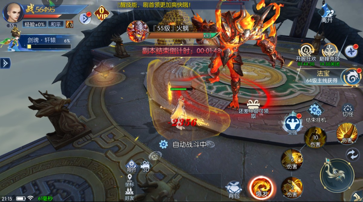 逆天纪在开荒期主要以推进主线为主,玩家可跟随任务流程不断升级,解锁一个又一个游戏玩法,并在这过程中学会穿戴装备、解锁仙剑、了解副本玩法等。整个过程还是挺轻松的,而且游戏还加入了自动战斗,让玩家能更轻松地渡过前期的任务过程。
