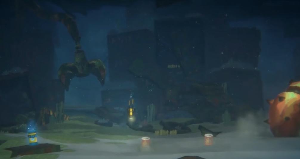 慢慢的螃蟹boss会冒头出来,此时玩家需要抓住机会使用地面上的炮竹,然后直接把炮竹丢在螃蟹boss的背上。一旦炮竹爆炸以后,会对螃蟹boss造成伤害。而螃蟹boss身上的轮胎会直接掉落,玩家此时需要重复进行这个动作多次。