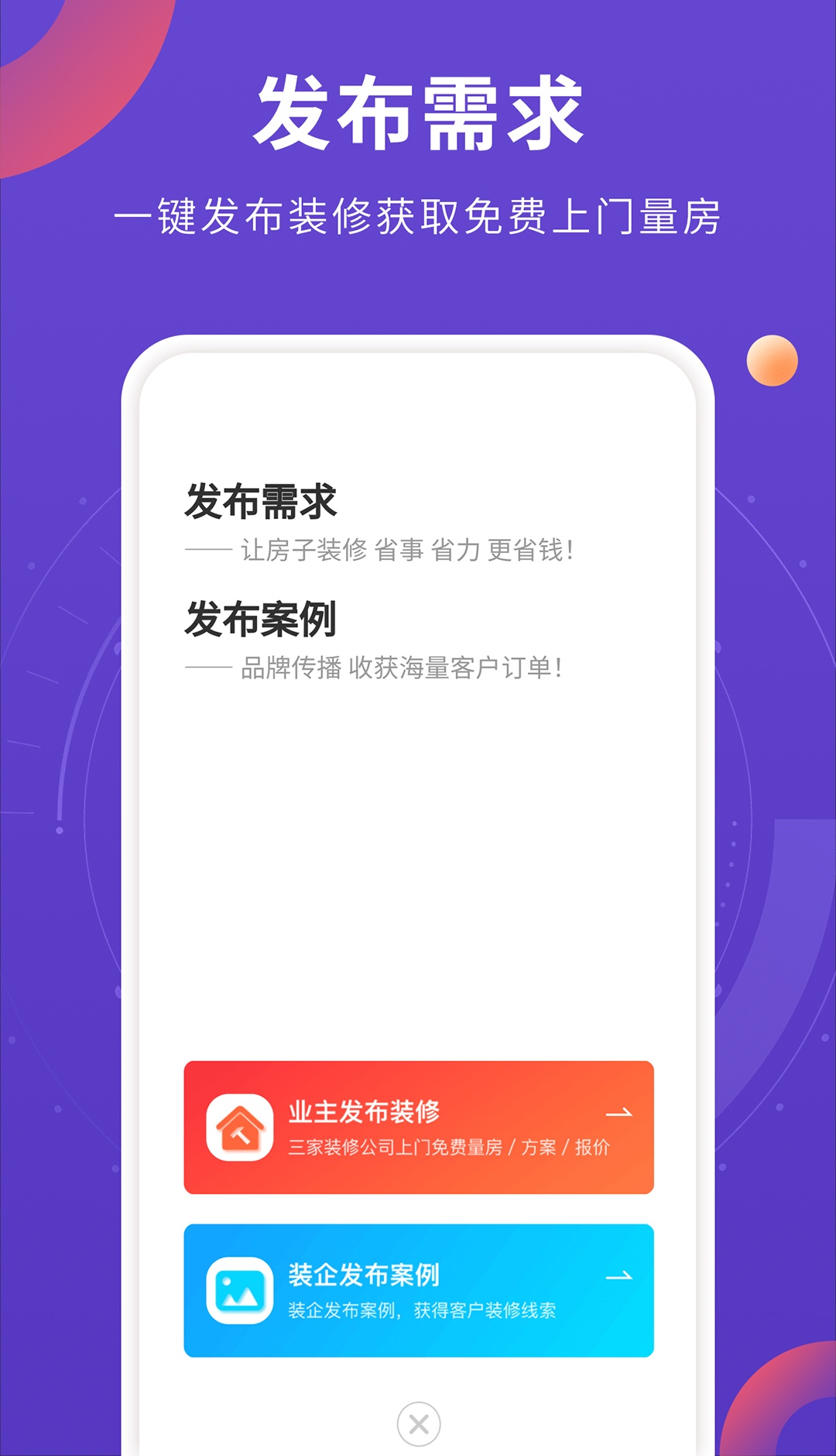 一站式的解决大家的装修问题和装修烦恼,一键智能匹配户型,能够快速渲染出效果图,一键就可以投稿与分享,把你的装修心得写出来让更多的人看到,展示更多的意见。