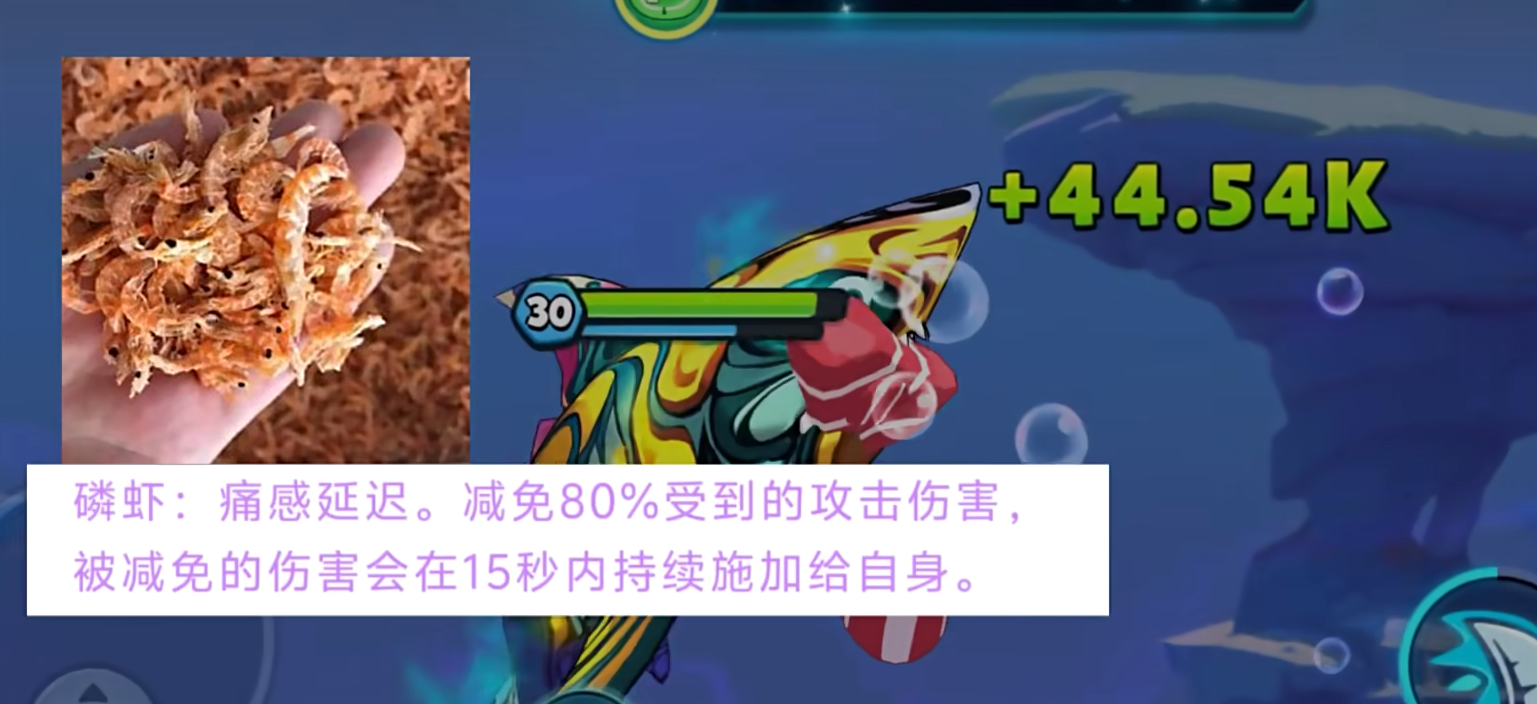 最后的“磷虾”也是第七海洋中十分有特点的一个存在,它有着堪称全游戏最强的减伤技能,可以直接降低自身所受伤害的80%,不过这个伤害只是暂时被减免,之后的十五秒内还是会持续返还给自身。