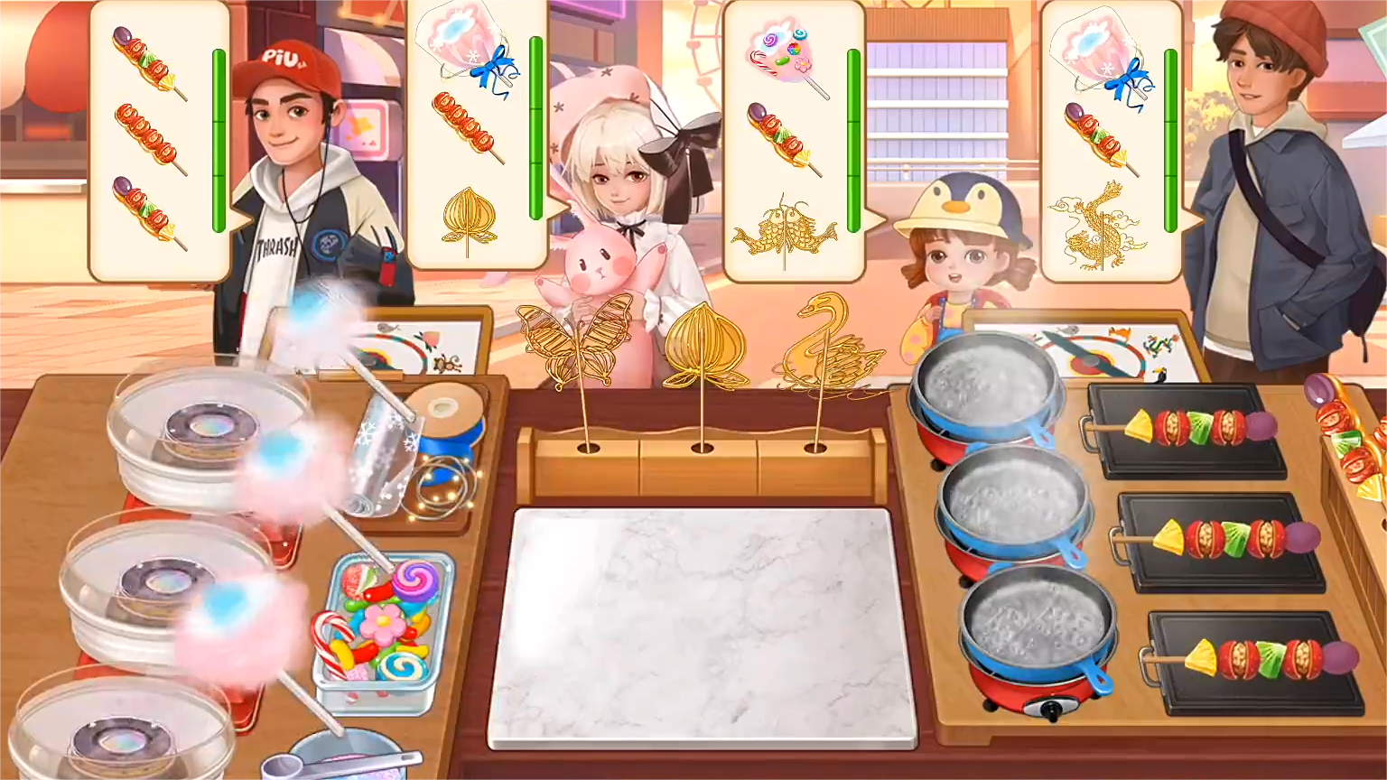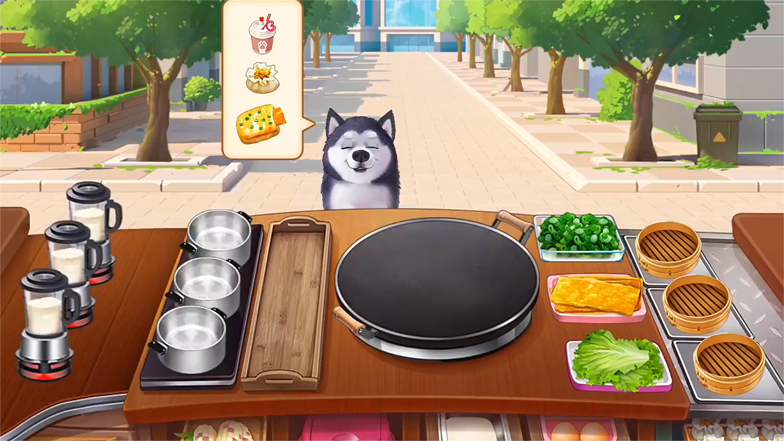 系统会根据玩家达成每一关的指标在关卡结束之后就会有不同的评价,三星的等级是完成所有指标之后所获得的最高的评价,每一个阶段在全部达到三星之后,玩家就会解锁全新的店铺,里面有着全新的菜品与客人等待解锁。并且在游玩过程中,玩家每遇到一次新客人就会触发不同的对话,在目前看来,哈士奇的对话是很奇特的,从这一点上就可以看得出厂商在游戏的剧情与小细节上都是比较用心的。