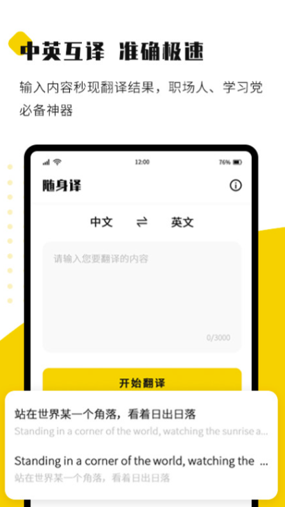 专属你手机的个人翻译小助手,任何得内容都是可以通过它完成翻译,从而还会有重点难点的延伸,加深大家对于单词和句型的印象,软件的操作也十分的简单顺手。