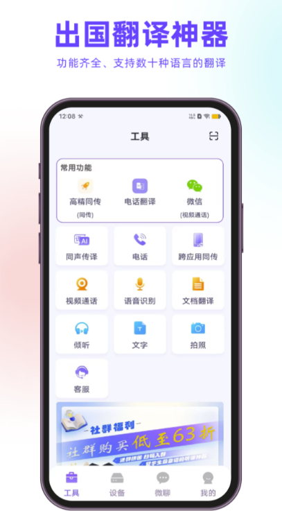 该软件非常适合商贸和出国留学的用户使用,这里的功能非常的有特色,相机拍照方式就可以将其快速的翻译出来,自带的倾听模式翻译也给大家节省了不少时间。