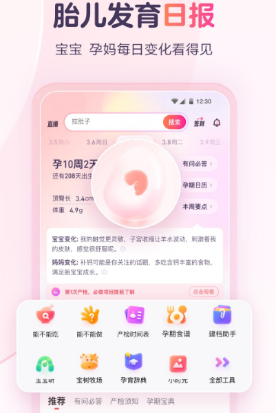 这款应用女性朋友非常熟悉,作为女性健康领域中的领头羊,几亿用户都在使用,很多明星以及综艺影视都在强烈推荐。可以根据个人需求随意切换相关模式,包括备孕、怀孕、育儿等为准。怀孕之后直接切换成为怀孕模式,为准妈妈提供极其丰富的知识信息以及贴心的提醒。比如怀孕期间的食谱是否能吃。还可展现怀孕周期以及宝宝在腹中的状态。