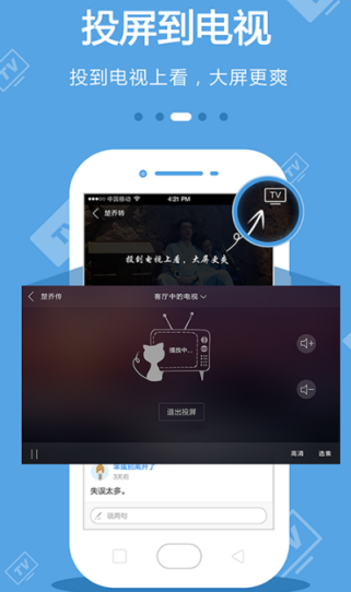 在这款软件上不仅可追各种不同风格的电视剧,同时也可看电影、综艺节目以及cctv 1、cctv5这些频道。支持投屏,可投放到电视上,通过大屏来观看。