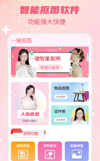 如果想要将图片中的人物或者是其他物体抠出来,就可选择这款软件,只需一键抠图,完全不会留下痕迹,这款软件也可对图片裁剪、压缩、修改尺寸和拼接等等。