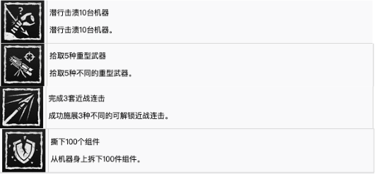 这些奖杯当中除了一些最基本的达到20级,达到30级,达到50级,这些通关级别的奖杯之外,还有几个奖杯也是玩家必须要拥有的,分别是完成三套近战连击,击溃十台机器和撕下100个组件接下来小编就来一一分享一下相应的获取攻略。首先,玩家在技能战士,技能树当中解锁三个近战连击即可拥有完成三套近战连击奖杯,目前玩家可以在格斗场当中快速解锁这个奖杯。