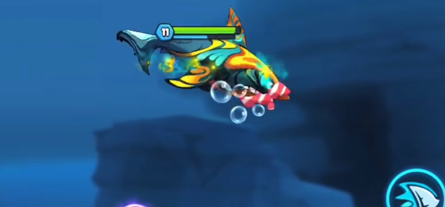 另外还需要注意,只有进入到海底世界才能够看到巨齿鲨,除此之外也会有其他的一些技能,例如可以选择用小型炮弹撞击,一般都是作用一些小鱼。从这里就可以看出,游戏中的巨齿鲨还是很有优势的,喜欢就来感受一下。