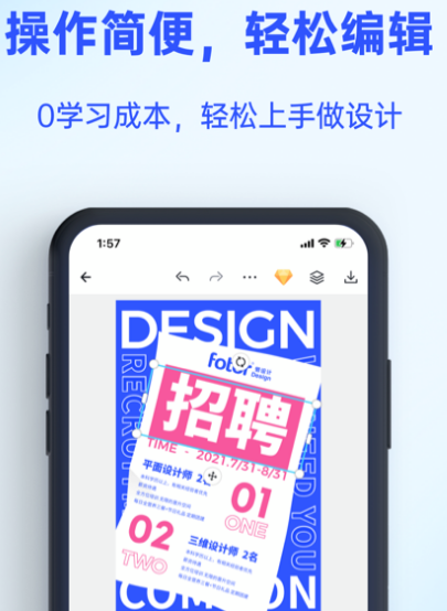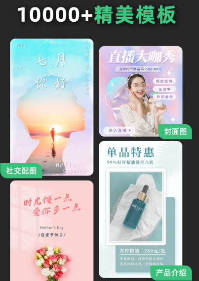 专业的作图设计app操作简单易上手,快速完成平面设计。模板素材任由挑选,解决各设计场景作图需求,比如封面图、头像、表情包、海报、朋友圈背景等。