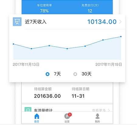 它能帮助大家去实时的了解车辆的状态,包括去查看车场里面的空余车位等信息,同时每日的收入数据等走势都是可清楚的见到,让大家能实时的掌握,因此得到了许多商家的青睐。