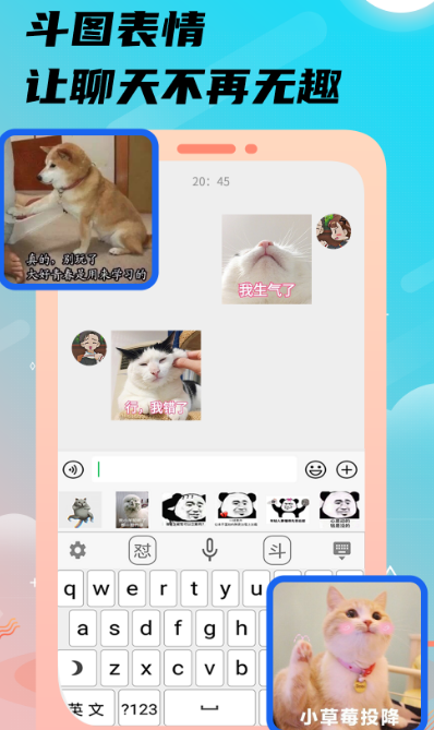 这是生活当中必不可少的键盘应用,拥有好玩个性的输入模式,有聊天气泡、表情斗图、搞笑段子等等,还有专业的交流社区,我们可以找到很多兴趣话题,可以找到志同道合的好友。也是值得选择的游戏键盘,很多游戏博主都在使用。聊天气泡样式更是多种多样,比如明星、卡通、炫彩等等,这样聊天不再单。