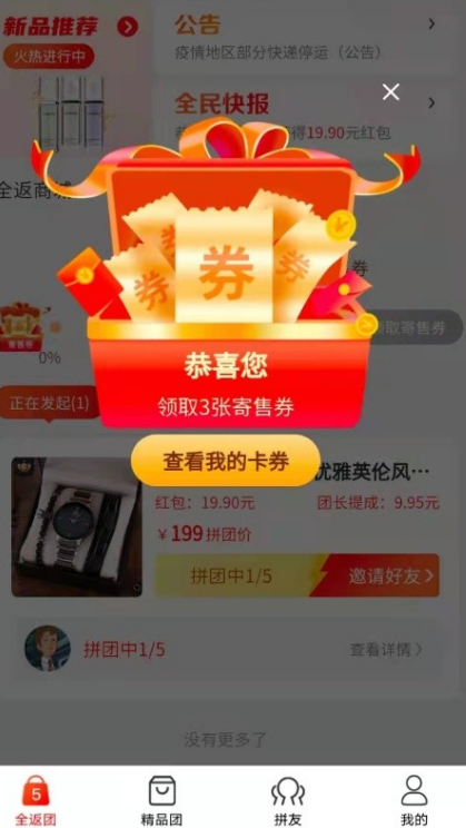 作为趣味电商平台,它也是可进行团购的软件,拥有丰富的品类,采用电商加分佣机制设计的风格,可以让用户在购物的时候了解有趣的购物体验。还有全新的购物模式,既可以参加5人团,也可参加其他的团购模式,拥有很多的优惠券,可以在团购的时候使用,只要品种的商品都可享受极速发货以及预售服务。