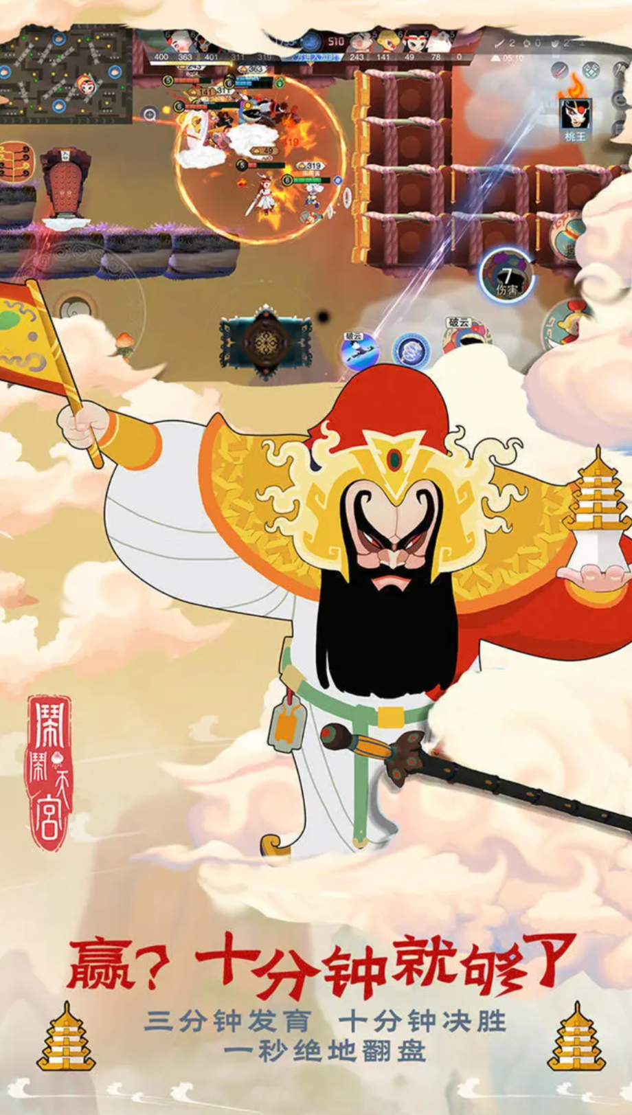 闹闹天宫是个区别与传统moba玩法的国风新作,在这里杀人推塔不是我们的首要目标,每个队伍都要积累仙桃,率先获得1000仙桃则为获胜。我们接着往下看。