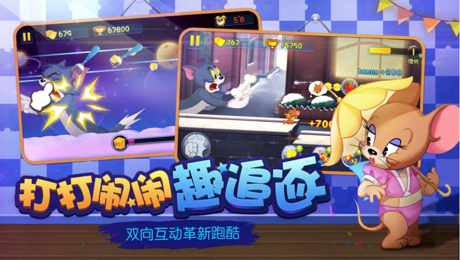 本作是款充满竞技性和欢乐性的动漫改编联机类游戏,玩家可以扮演汤姆猫在复杂的地图上追逐、抓捕老鼠,也可以扮演可爱的杰瑞偷取冰箱中的奶酪等食物,动画化的美术风格和休闲欢乐的游戏氛围也是亮点,小动物滑稽的表情动作也跟猫和老鼠的动画片如出一辙,相信这款充满乐趣的竞技游戏会让玩家回忆起童年动画片。