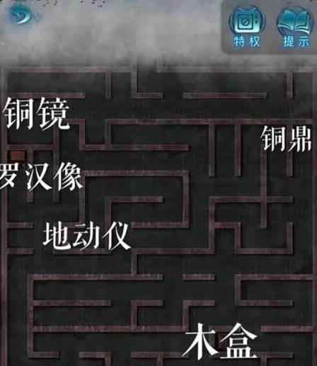 接着可以切换视觉角度看到在左侧桥下面会有两个布娃娃,可以揭开眼前的迷宫,前左右右前前左右前右右按照这一个顺序走过眼前的迷宫,在打开盒子之后就可以获取木雕和古币。
