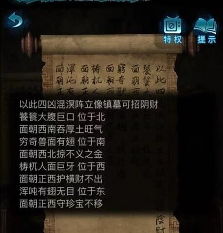 还可以根据左侧雕像的提示将古墓打开获取火把,一旦在点开书籍之后就能获取咒符。