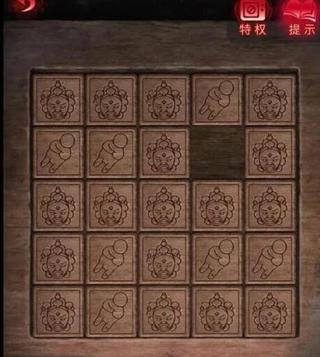 此时可以用手中的火把把庙宇燃烧能得到王相愿和弓箭,把符咒贴在脸上能得到青铜球和小铜船,根据铜鼎上面的图案可以直接替换图案,然后走出去。