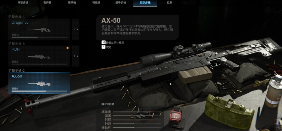 AX50是一种手动上膛的狙击枪,它的射速较慢,每次射击后都需要重新上膛,但是后坐力也较小,不会影响瞄准。它的伤害较高,可以一枪击穿敌人的护甲,但是需要命中头部或胸部才能秒杀。