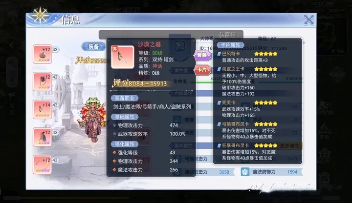 海盗王卡片:这张卡片能够修正短剑的伤害损失,使得短剑可以发挥出100%的威力。对于双刀流刺客来说,这是一张必备的卡片。