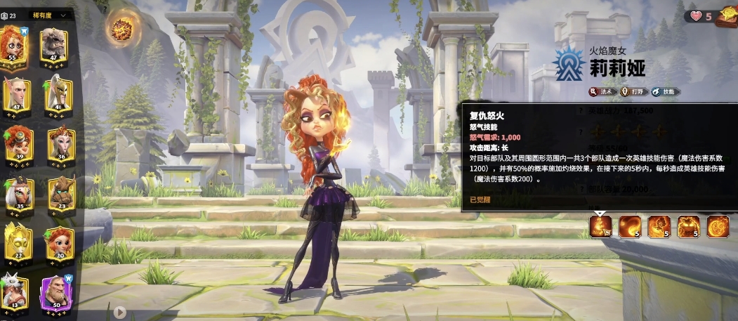 然后为大家解读的英雄是莉莉娅。这名英雄的定位是法师,可以对敌人造成大量的魔法伤害。并且攻击范围特别大,可以对多个敌人进行攻击。这种英雄属于战斗中绝对的输出主力。当然,这个英雄的缺点也是很明显的,就是技能cd非常长。导致这个英雄并不能持续输出。所以玩家在选她时,一般都会选其他英雄搭配使用。保证莉莉娅在无法使用技能时候的安全。