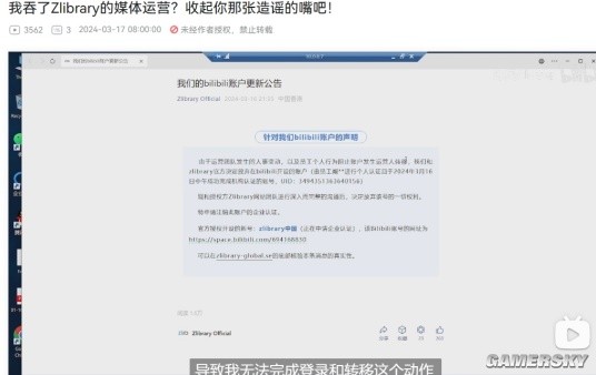 在另一侧,Z-Library的B站运营针锋相对地发布了自己的回击,并揭穿了微信运营一侧的谎言。在他的声明里,自己近期“失联”的原因并非不负责任所致,而是因为自己被请进橘子喝茶了。