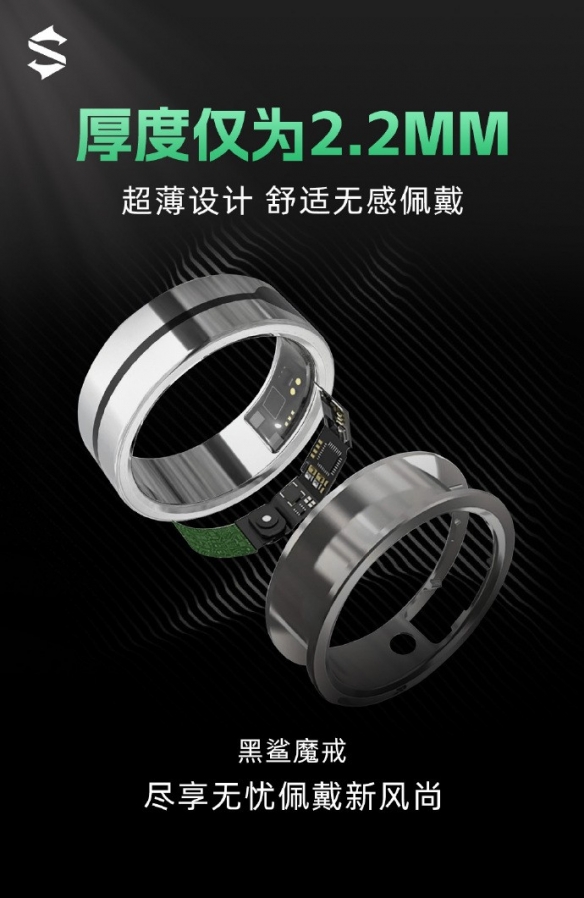 “黑鲨魔戒”外观采用超薄设计,厚度仅为2.2mm,舒适无感佩戴。