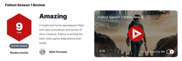 本期小编给大家带来《辐射》真人剧集第一季口碑大爆的讲解。不仅烂番茄新鲜度高达95%,IGN也给出了高分评价。部分影评人评价该作为“不管是粉丝还是新人都是必看”、“一个完全原创的故事”,是“有史以来最好的电子游戏改编”。接下来我们一起往下看看吧。