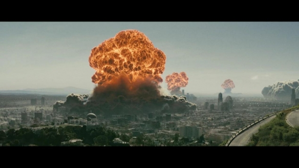 回到《辐射》剧集上来,遵循原作的设定,地球因为核爆发变为废土,到处都是辐射,生物开始异变。在剧中第一幕就制作了核爆当天的大场面。