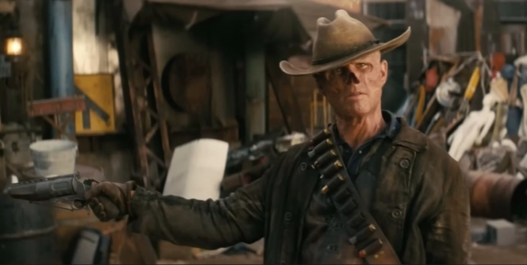 一条涉及到“尸鬼”。在《辐射》的游戏世界中,有成千上万的尸鬼存在,是一种在核爆炸中幸存下来,但因残余辐射而严重变异的人类种族。剧中沃尔顿·戈金斯饰演的尸鬼在核爆前身份是好莱坞演员库珀·霍华德,他和自己的女儿亲眼目睹了毁灭地球的核战爆发。